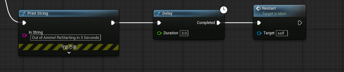 delay를 발사체의 소진과 재시작 노드 사이에 넣어서 플레이어가 재시작이 될 것임을 인지할 수 있게 합니다.