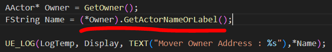 포인터가 있는 경우 화살표 연산자를 사용하고, FString이나 FVector같은 구조체는 점 연산자를 사용합니다.