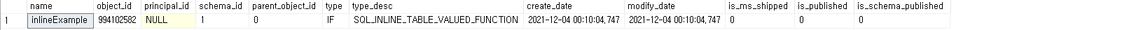 >> 현재 데이터베이스에서 전에 만들었던 IF(inline table valued function)타입의 오브젝트가 나왔습니다.