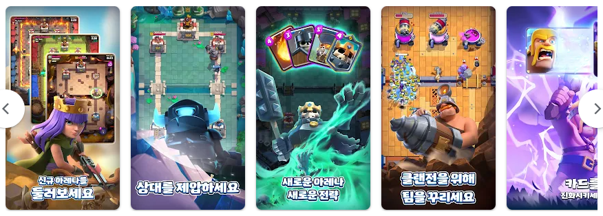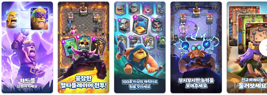 룰: 1대1 실시간 전략 게임으로 매 초 차오르는 마나로 내 손패의 카드를 사용해서 상대 성을 무너트리고, 상대의 중앙 성을 무너트리면 승리한다. 카드의 종류는 유닛과 마법이 있고, 유닛은 공중, 지상 유닛으로 나뉘며 서로 간의 상성이 뚜렷하다. 승리 전략은 다양하지만 핵심은 상성을 이용해서 상대의 높은 코스트 카드를 저렴한 코스트로 막아가며 스노우볼을 굴리다보면 타워 체력을 갉아먹거나 큰 유닛 웨이브가 형성되어 승리할 수 있다.
