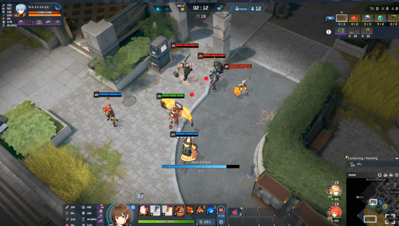 룰: 3인 파티가 맵의 원하는 곳에 떨어지며 시작하는 서바이벌 게임. 플레이어는 자기장을 피해가며 상자를 열거나 몬스터 또는 다른 플레이어를 처치해 장비와 경험치를 얻고, 상위 장비는 조합식을 통해 획득할 수 있다. 시간이 갈수록 좁아지는 자기장에서 플레이어들이 만나고 그동안 파밍해온 장비와 레벨, 컨트롤의 격차로 승부가 갈린다. 지형활용이 중요하고 캐릭터간 상성과 3인 파티의 다양한 조합이 가능하다.