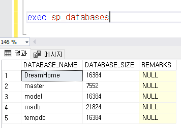 sp_databases : 데이터베이스 테이블을 반환