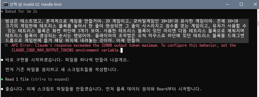 claude 코드로 1010! 게임 처럼 만들어달라고 한다.