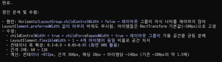 아이템 간격을 지금의 2배로 늘리고, 너비를 늘려도 게임에 반영되지 않는 점 분석하고 지금 보이는 크기의 1.5배로 늘리기