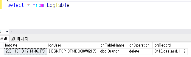 >> 행을 삭제해서 trigger를 작동시킨 후