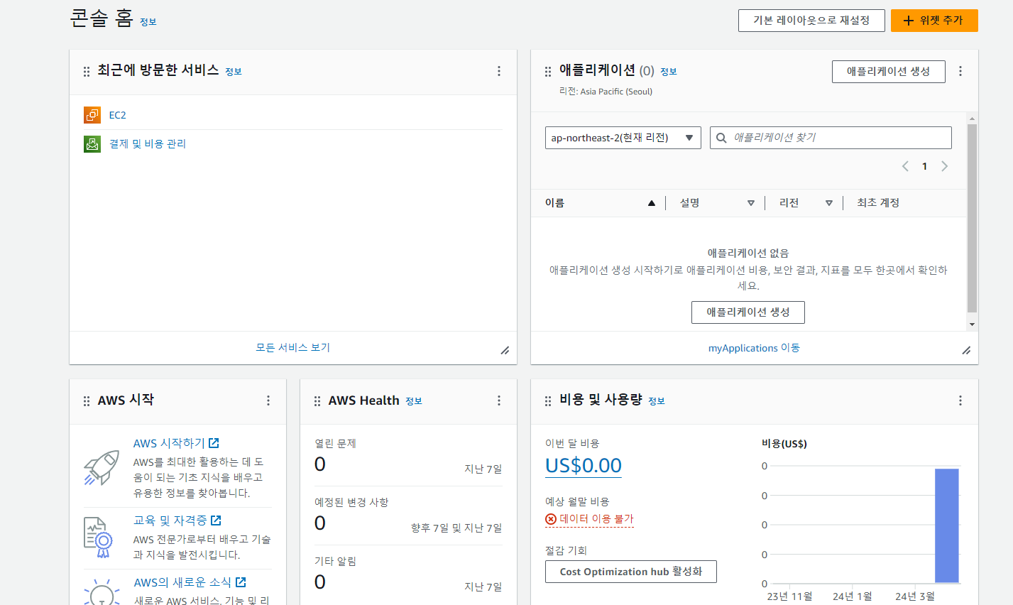 이러한 프리 티어 혜택은 AWS 신규 고객에게만 제공되며 AWS 가입일로부터 12개월 동안 유효합니다. 12개월의 무료 사용 기간이 만료되거나 애플리케이션 사용량이 프리 티어 범위를 초과할 경우