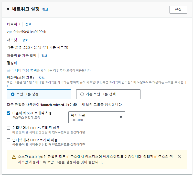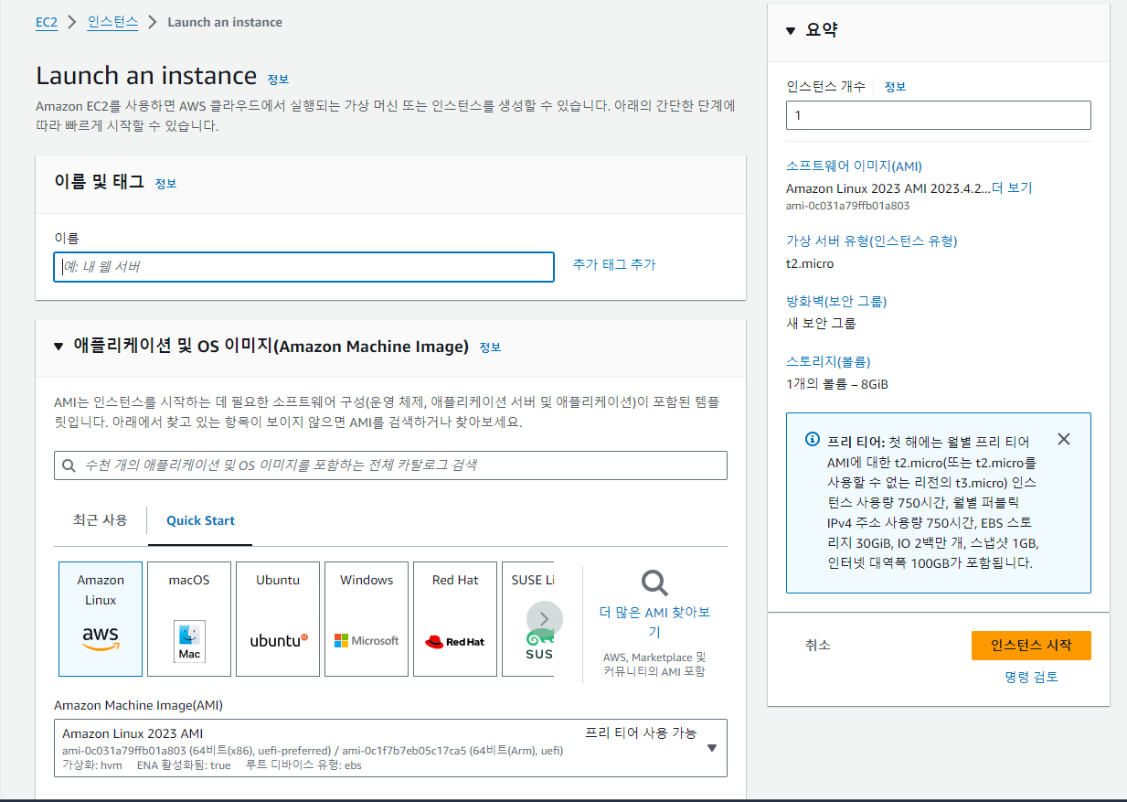 무료는 t2.micro만 사용 가능하므로 선택권이 없다.