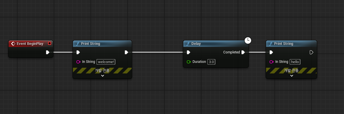 블루프린트는 Event graph라는 공간에 미리 동작을 설정해둔 노드(node)를 배치하여 순서대로 작동되게하는 제어 방법이다.